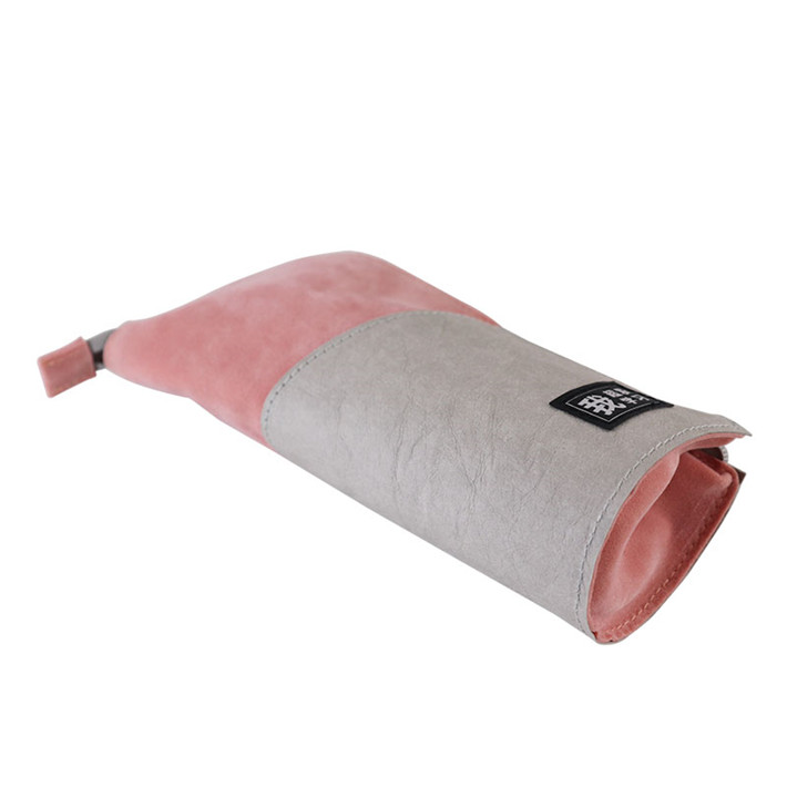 2019得力文具筆袋筆筒二用多功能牛皮紙拼接桃皮絨拼接學生袋定制